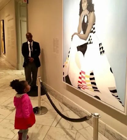 I love the image of the little girl looking up at the portrait of Michelle Obama. I got to see the artist's exhibit "Amy Sherald: American Sublime" when it was at the Whitney Museum earlier this year. This show is still traveling into 2026 and definitely worth looking for in person ... and if that's not possible, the book is available!